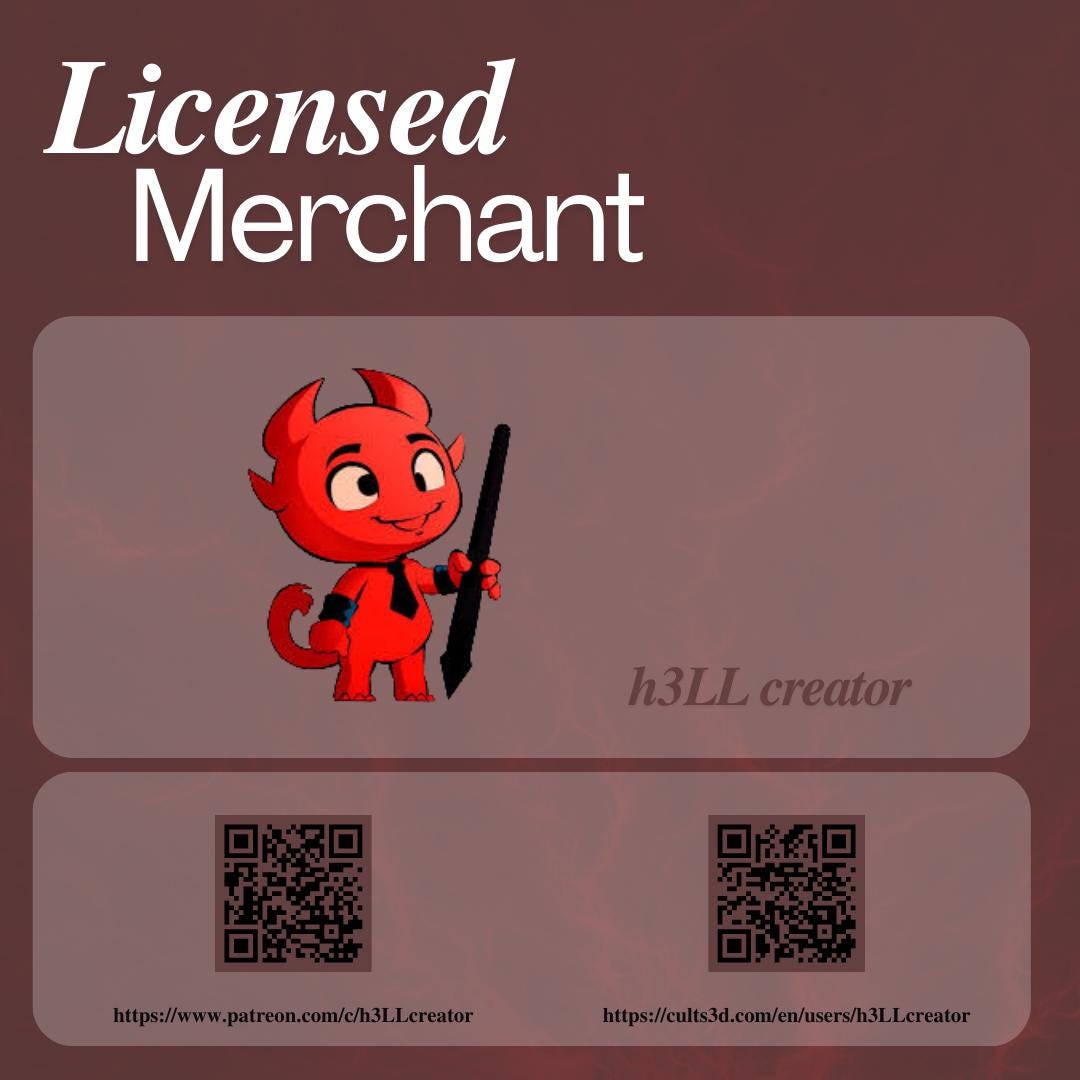 All STL files used for 3D prints are the property of their rightful owner, h3LL creator. We are a licensed merchant authorized to sell physical 3D prints made from these files. Please note that we do not sell the digital STL files.