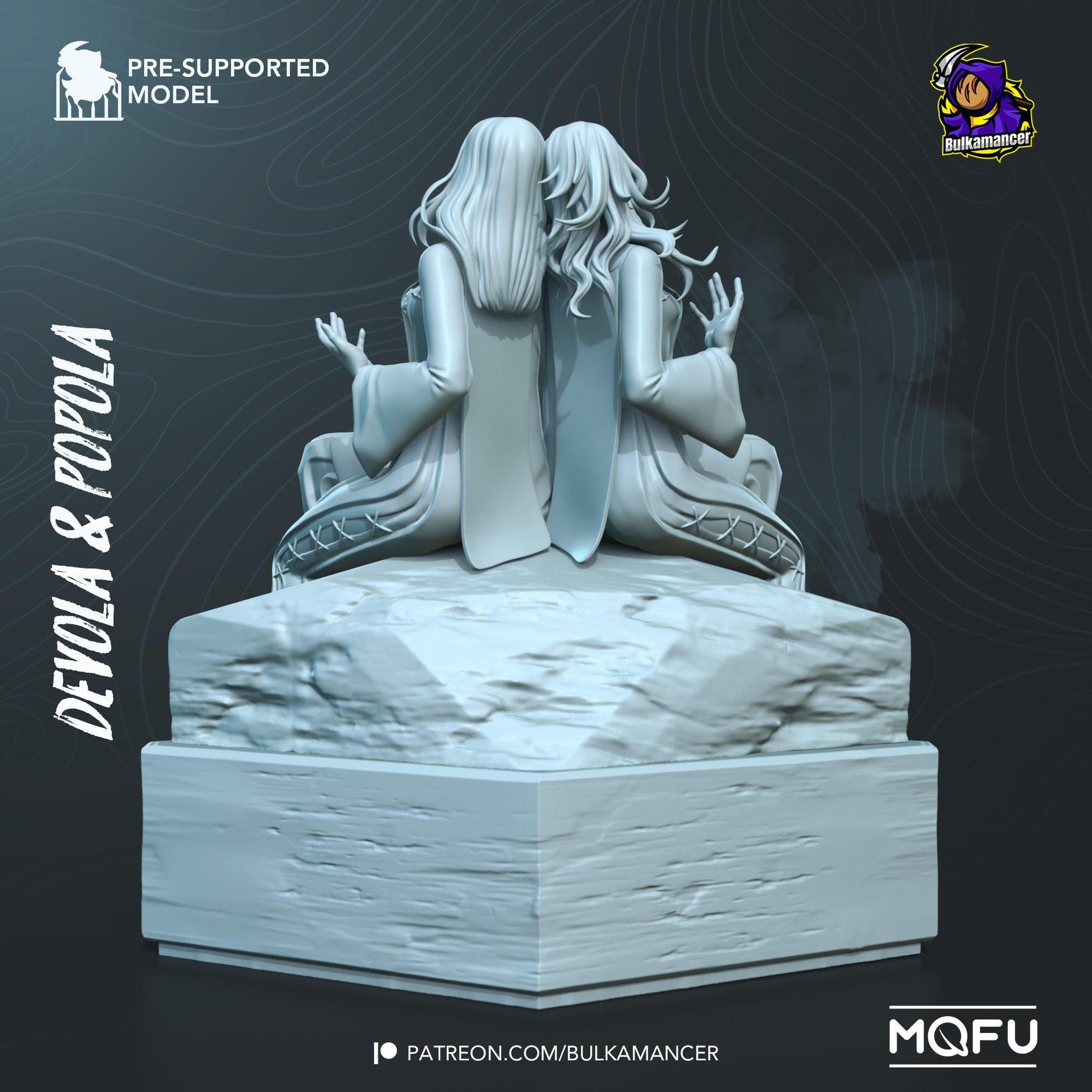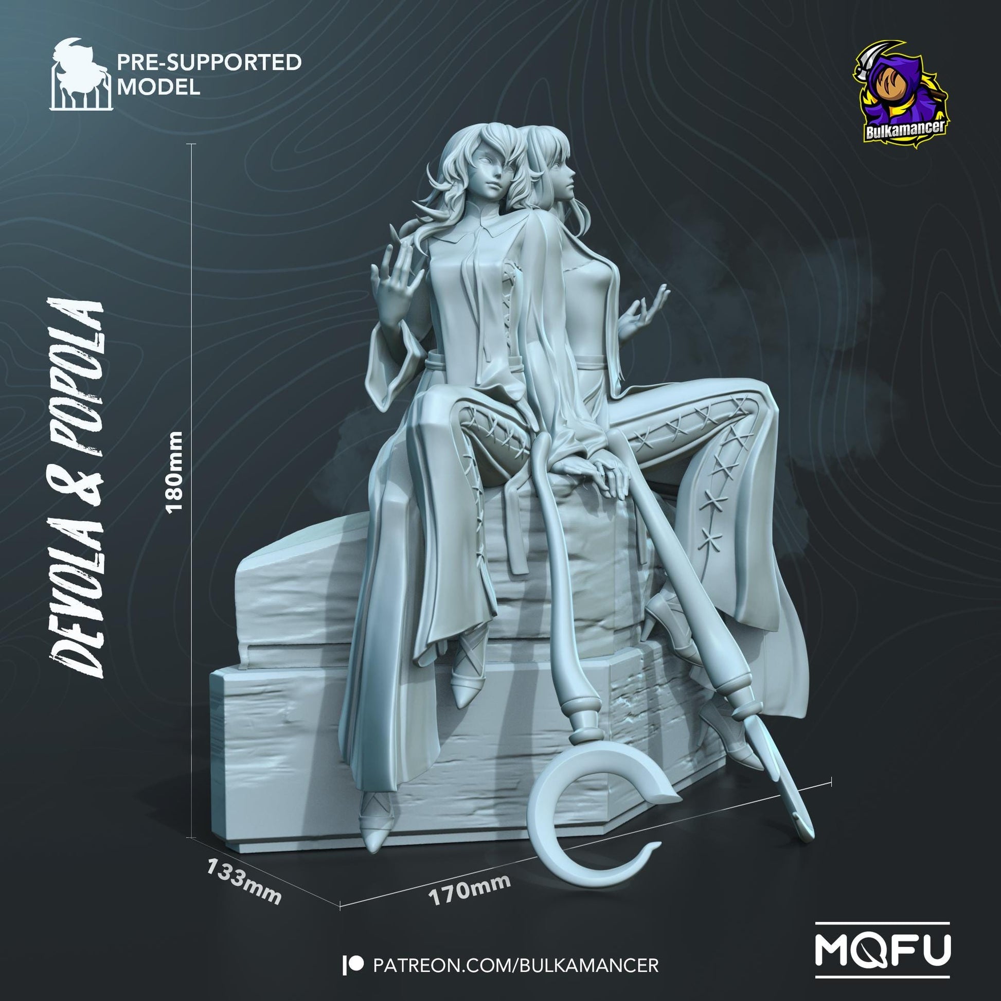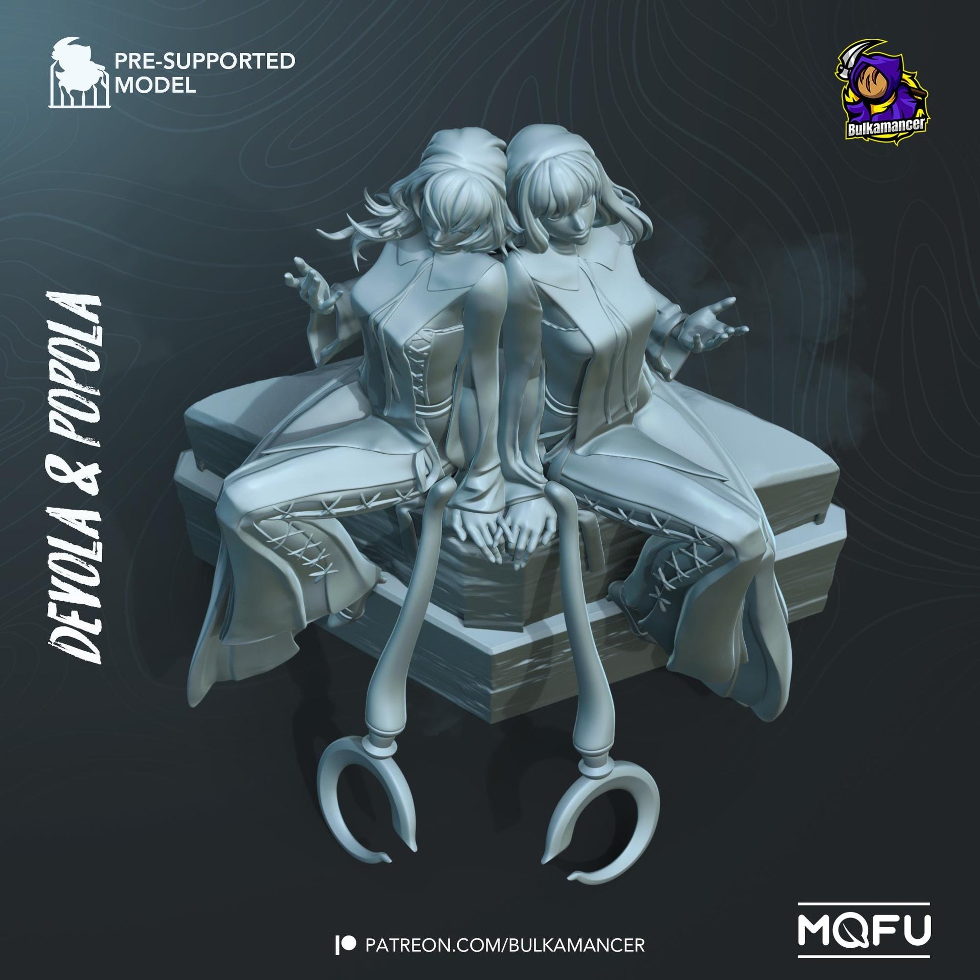 Devola & Popola inspired resin miniature figurine. Fan-made tribute sculpt, unpainted resin print ready for painting or display. Great for collectors, painters and fantasy fans.