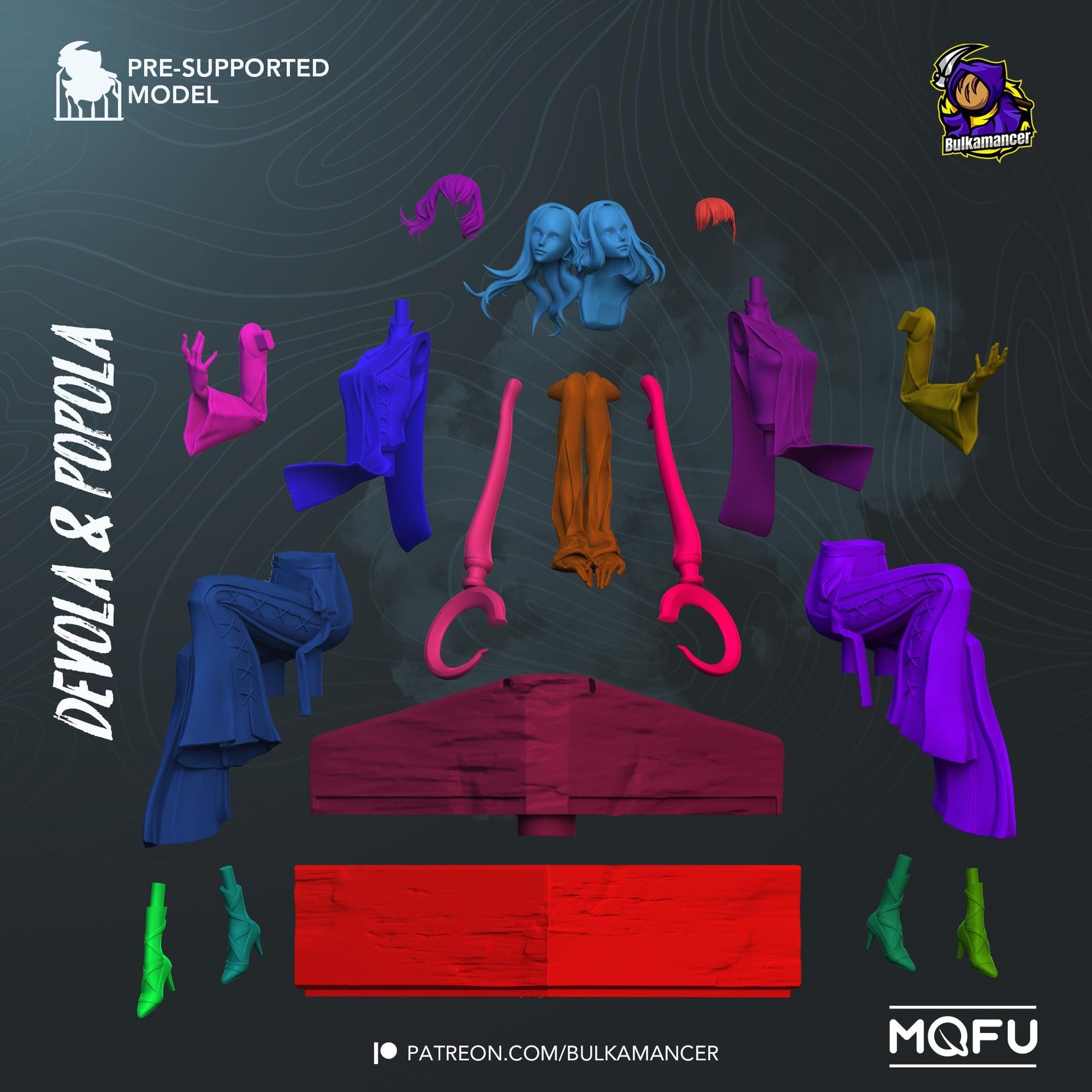 This Devola and Popola inspired resin miniature is a handcrafted fan-made tribute designed for collectors, painters, and fans of stylized fantasy or video-game inspired art. The sculpt captures two characters together — with detailed outfits, flowing hair or cloth, and a pose full of character, giving the piece narrative energy even before paint. The high-resolution resin print produces smooth surfaces and crisp detail, giving you a clean, reliable base to prime, paint, or seal.