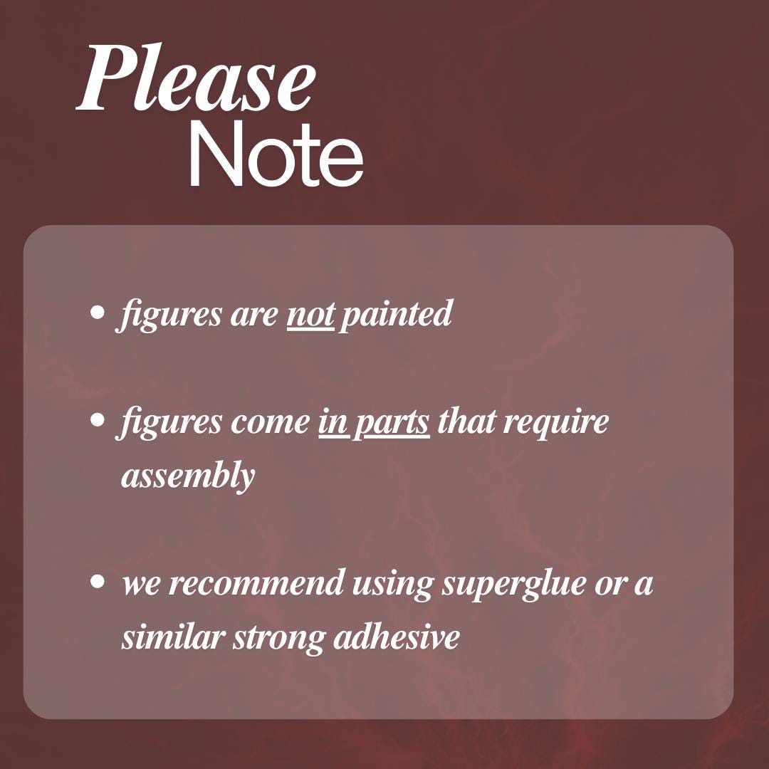 • Assembly Required – All figures come in parts and will need to be assembled