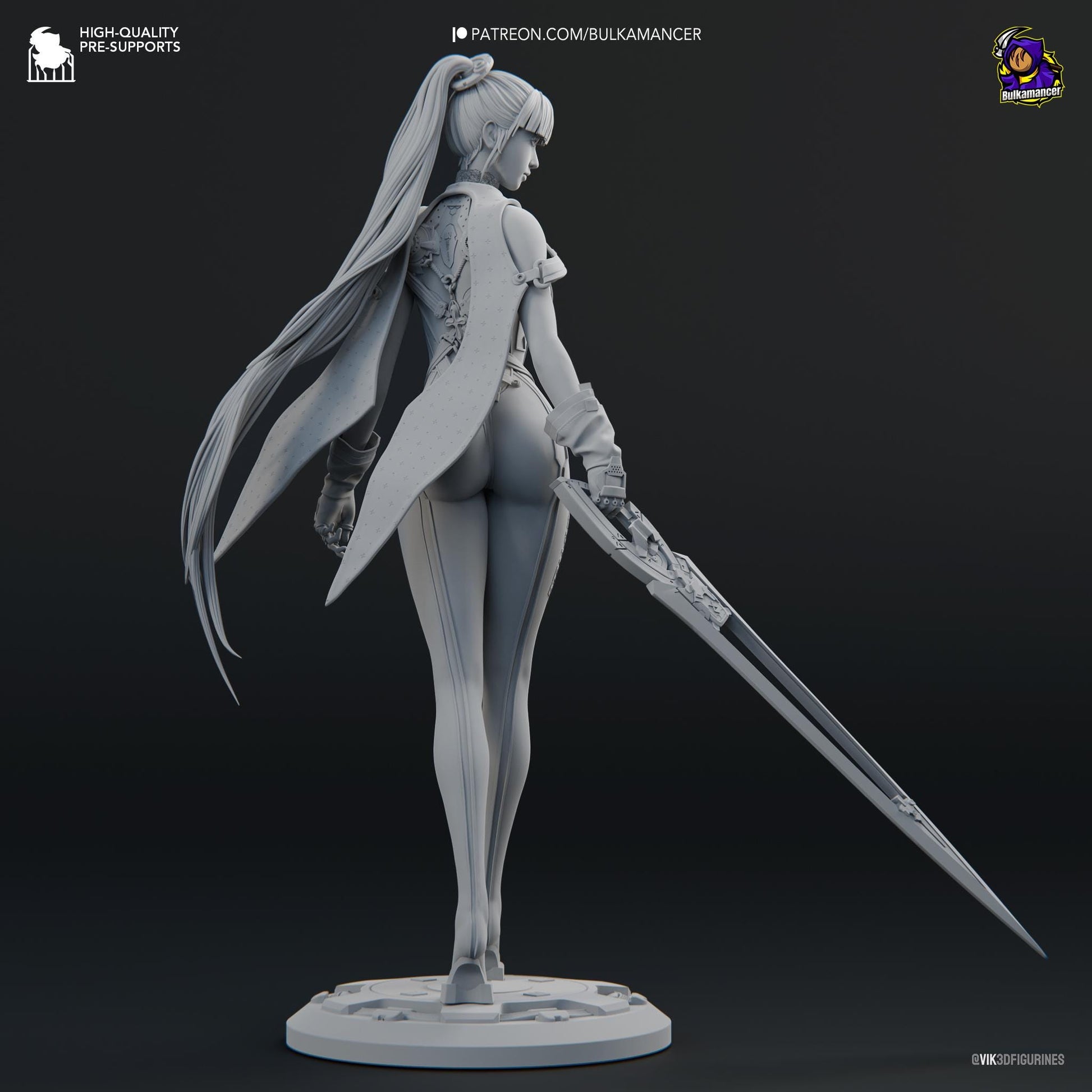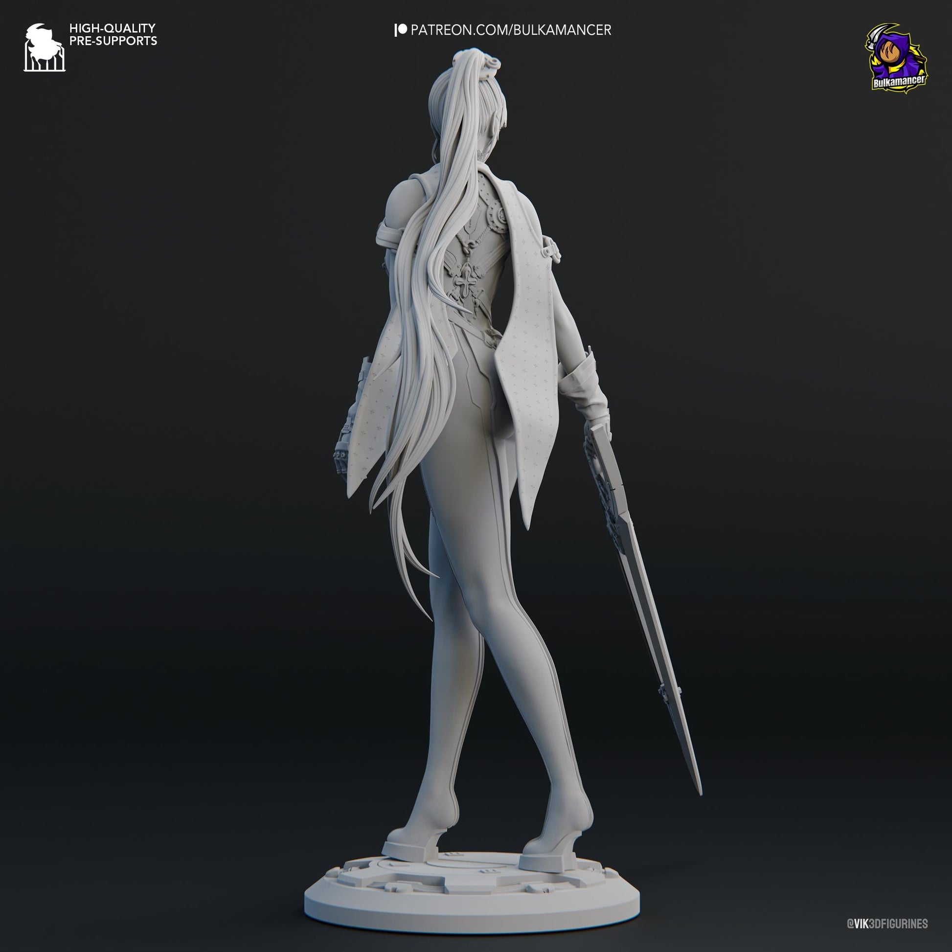 Eve inspired resin miniature figurine. This is NOT AN OFFICIAL PRODUCT, FAN MADE HOMAGE crafted for collectors, painters, and fans of futuristic fantasy and sci-fi aesthetics. The sculpt captures a sleek, dynamic character posture with well-defined armor or outfit lines, elegant detailing, and a silhouette that balances action and poise. The high-resolution resin print delivers sharp sculpt detail and smooth surfaces, giving you a clean base ideal for priming, shading, highlighting or custom painting.