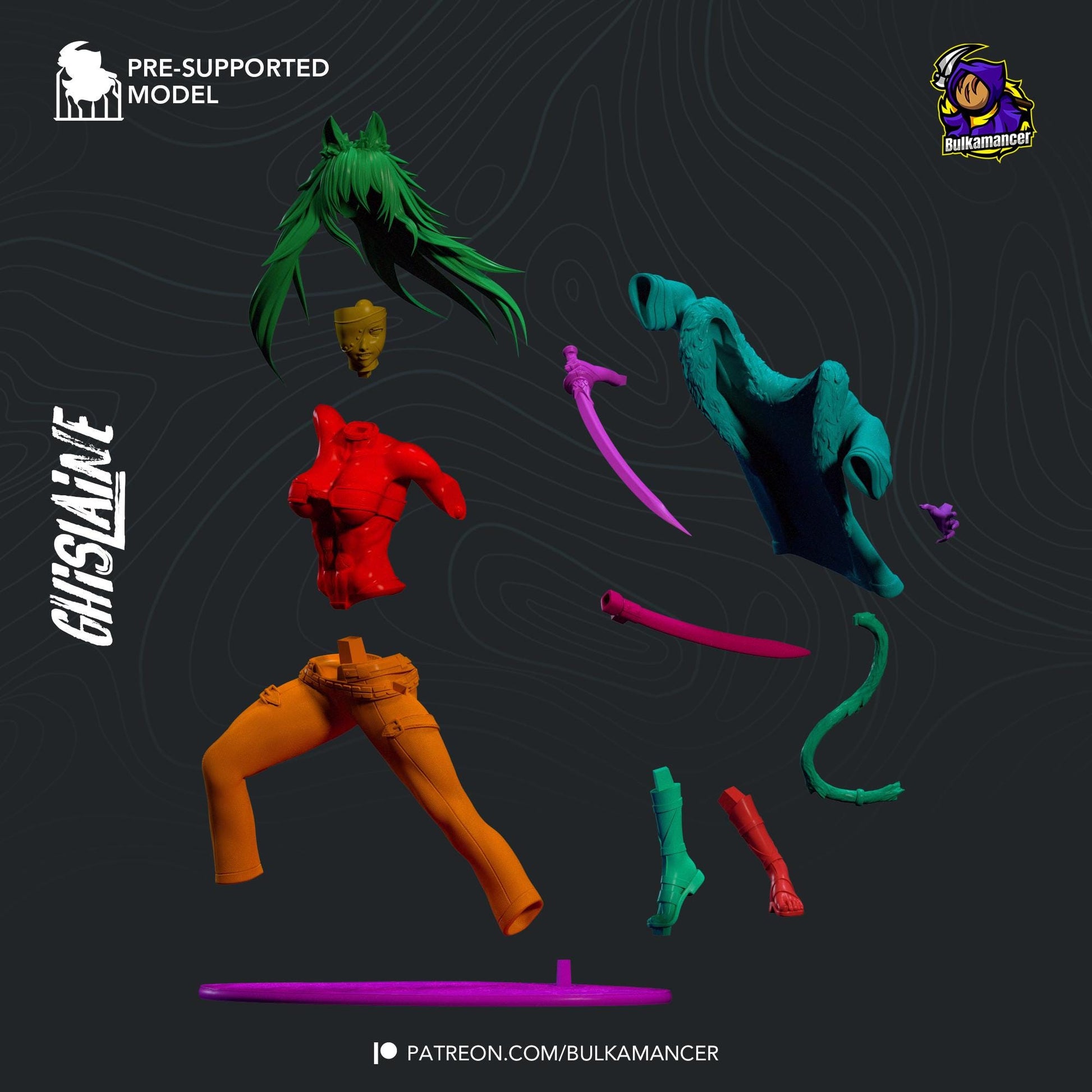 Ghislaine Dedoldia inspired resin miniature figurine. This is NOT AN OFFICIAL PRODUCT, FAN MADE HOMAGE, handcrafted for collectors, painters, and fantasy figure enthusiasts. The sculpt captures Ghislaine’s powerful, beast-like posture, armored detail and confident stance — all designed to show strength and agility while offering painters an engaging surface to work with. The high-resolution resin print features clean lines, sharp edges and smooth surfaces, making it ideal for priming, painting, or displaying raw.